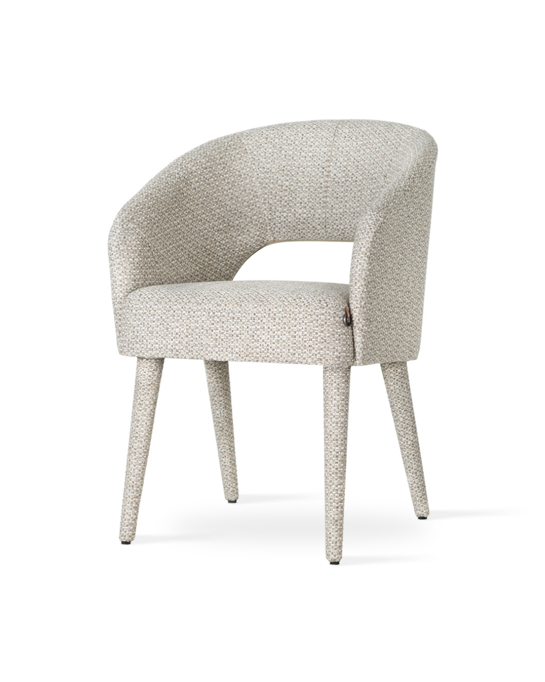 Eleganckie krzesło tapicerowane, które łączy wygodę z nowoczesnym designem. Miękkie siedzisko i ergonomicznie wyprofilowane oparcie zapewniają komfort nawet podczas długiego siedzenia. Obite wysokiej jakości tkaniną, dostępną w różnych kolorach i fakturach, krzesło doskonale komponuje się ze stołem w jadalni, salonie lub biurze. Stabilna konstrukcja na drewnianych lub metalowych nogach gwarantuje trwałość i estetykę na lata.